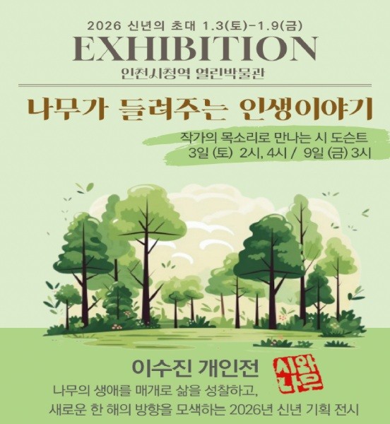 이번 전시는 작가 이수진이 기획한 2026년 열린박물관 첫 대관전시로, 나무의 생애를 매개로 인간의 삶을 성찰하고 새해의 방향을 모색할 수 있도록 구성했다.