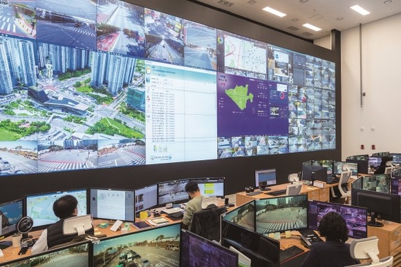 지난해 10월 창조혁신캠퍼스 성사 6층에 문을 연 고양 스마트시티센터 상황실에는 55인치 스크린 78면이 설치돼 시 전역 상황 정보를 실시간으로 띄운다. 생활방범 7,487대, 불법주정차 2,077대, 차량 방범 62대, 문화재 감시 45대 등 목적별 CCTV 9,671대를 365일 24시간 가동하며 안전과 교통흐름, 돌발 상황을 동시에 본다.