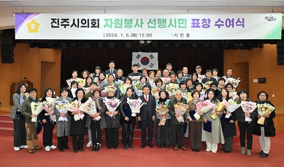 진주시의회는 6일 시청 시민홀에서 지역사회의 귀감이 된 시민 60명을 대상으로 '2025년 하반기 선행시민 표창 수여식'을 가졌다.