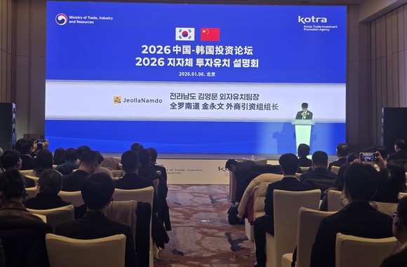 전라남도는 이재명 대통령의 중국 국빈 방문과 연계한 산업통상부의 지자체 투자유치설명회가 6일 베이징에서 열려 해상풍력, 데이터센터 등 지역 전략산업을 소개하고 관심 기업과 개별 면담을 펼쳤다고 밝혔다.