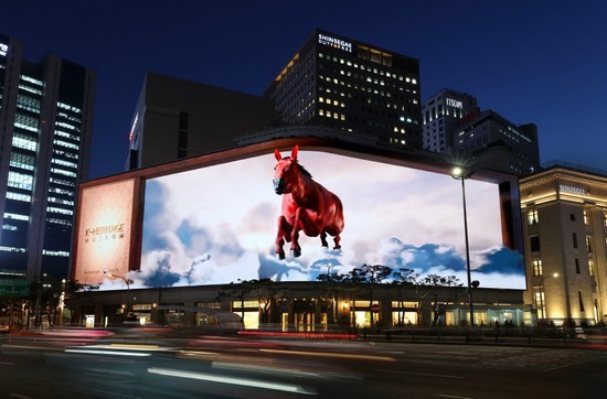 이번 미디어아트는 ‘천마도’에서 영감을 얻어 구름 사이로 말이 등장해 힘차게 달리는 모습을 담았으며, 입체감과 현장감을 표현하는 아나몰픽 기법을 적극 활용해 몰입도를 높였다.