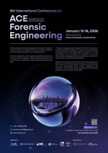 고려대학교 초융합 건설 포렌식 연구센터가 한국지반공학회, 한국강구조학회, 한국수자원학회와 공동 주관하는 제5회 ACE 포렌식 공학 국제학술대회(5th International Conference on ACE Forensic Engineering)를 개최한다고 8일 밝혔다.
