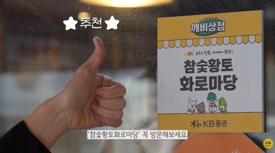 KB증권은 유튜브에서 깨비상점으로 선정된 ‘원이부엌’과 ‘참숯 황토 화로마당’도 알리고 있다. 이 영상의 제목은 ‘오늘도 누군가의 하루를 채워주는 한끼, 영등포 원이부엌’ ‘단골들만 몰래 가는 22년 전통 고기 맛집, 참숯 황토 화로마당’이다.