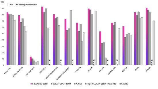 ‘K-엑사원’은 4개 부문 평균 97.83점으로 92.48점을 받은 미국 오픈AI의 GPT-OSS 120B 모델과 66.15점을 받은 중국 알리바바의 큐웬(Qwen)3 235B 모델 등 글로벌 프런티어 AI 모델 대비 높은 안전성과 신뢰성을 보였다.