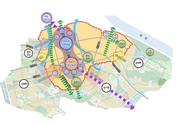 공항 접근성과 도시철도, 광역철도, 고속도로 IC, 한강변 등 지리적 이점을 한데 엮어 ‘친수형 테마공원’까지 포함한 도시 모델을 설계한다는 설명이다.