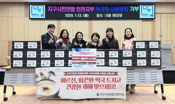인천시 남동구 간석2동 행정복지센터는 지구시민연합 인천지부로부터 어려운 이웃을 돕기 위한 떡국 떡과 사골곰탕 60세트를 기탁받았다고 밝혔다.
