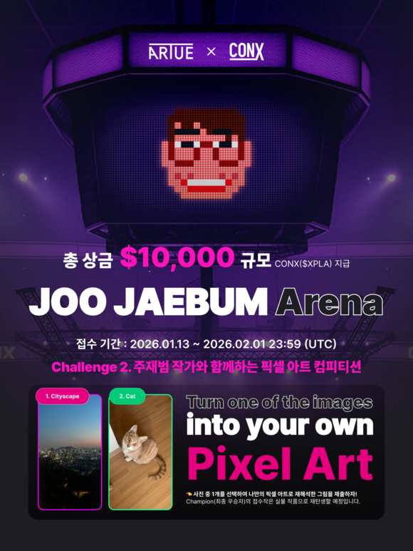 글로벌 블록체인 메인넷 CONX가 픽셀 아티스트 ‘주재범’과 함께 웹3 아트 프로젝트 ‘주재범 아레나(JOO JAEBUM Arena)’를 진행한다고 14일 밝혔다.