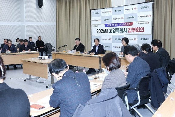 고양시가 14일, 백석별관에서 간부회의를 열고 ‘2026년 상반기 핵심사업 추진계획’을 집중 점검했다.