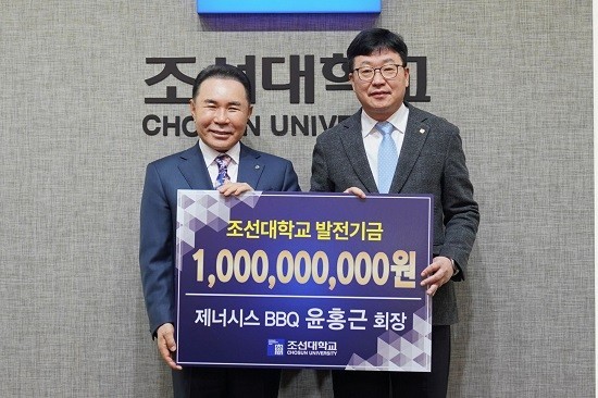 제너시스BBQ 그룹이 지난 7일 오후 조선대학교 본관 ‘청출어룸’에서 발전기금 전달식을 열고, 미래 인재 육성과 대학 교육 경쟁력 강화를 위한 발전기금 10억 원을 전달했다.