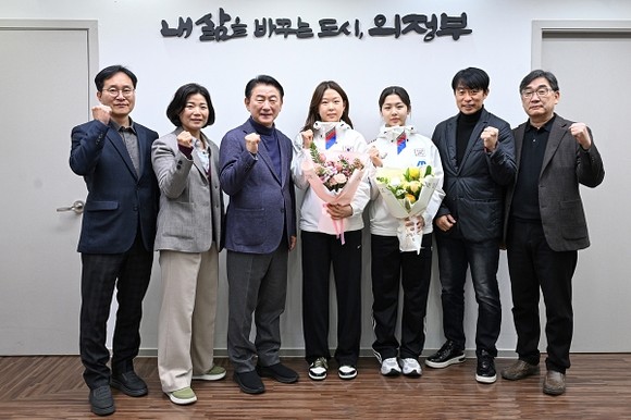 의정부시가 지난 16일, 밀라노-코르티나 동계올림픽에 나서는 김민선 선수와 출전이 유력한 정희단 선수를 격려하는 출정식을 열었다. 시는 두 선수의 출국을 앞두고 시장실에서 응원 메시지를 전하며 선전을 기원했다.