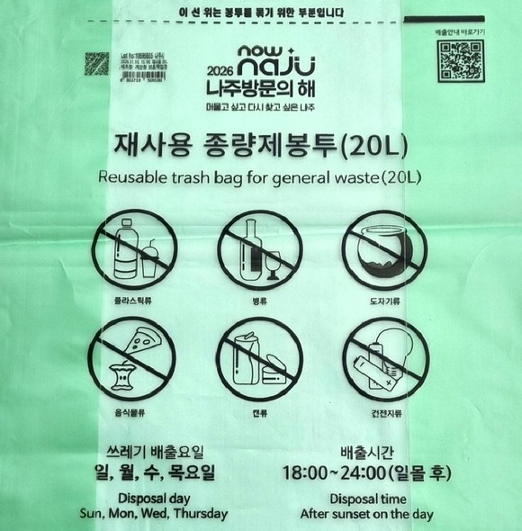 나주시는 시민들이 일상적으로 사용하는 생활 쓰레기 종량제봉투를 매개로 ‘2026 나주 방문의 해’와 지역의 매력을 지속적으로 알릴 수 있을 것으로 기대한다.