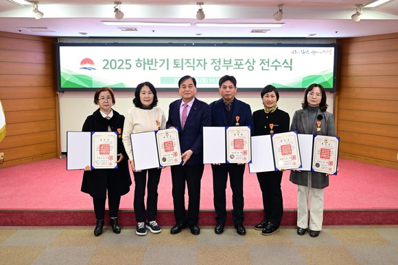 경북 김천시는 지난 19일 시청 2층 회의실에서 ‘2025년 하반기 퇴직 공무원 정부포상 전수식’을 개최했다.
