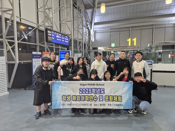 기계중학교는 지난 17일~오는 30일 13박 14일 일정으로 1,2학년중 희망학생 13명을 대상으로(분교포함) 필리핀 마닐라 현지의 해외 어학연수를 추진했다.