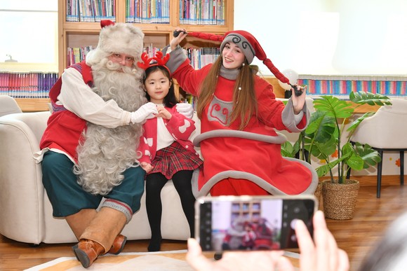 핀란드 로바니에미시 산타마을에서 화천산천어축제를 찾아온 리얼 산타클로스와 요정 엘프가 21일 축제장에서 관광객을 만난데 이어 화천읍 화천 어린이 도서관을 방문해 화천지역 아이들과 즐거운 시간을 보내고 있다.
