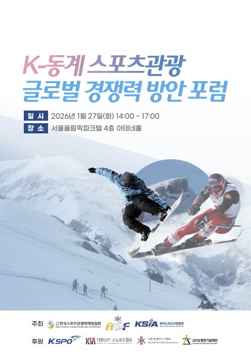 대한민국 동계 스포츠관광의 미래전략을 논의하는 ‘K-동계 스포츠관광 글로벌 경쟁력 방안 포럼’이 오는 27일 오후 2시 서울올림픽파크텔 4층 아테네홀에서 열린다.