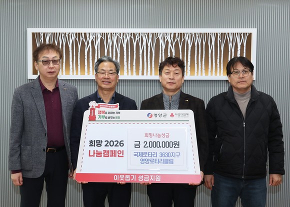 국제로타리 3630지구 영양로타리클럽(회장 황영호)은 26일 ‘희망2026나눔캠페인’에 동참해 지역의 어려운 이웃을 돕기 위한 성금 200만 원을 영양군청에 전달했다.