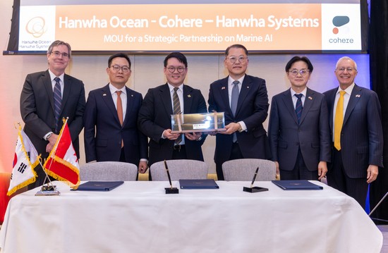 또 한화오션과 한화시스템은 캐나다의 유니콘 AI기업인 코히어와 인공지능 기술 협력을 위한 3자 MOU를 체결했다. 이를 통해 코히어가 갖고 있는 대형언어모델(LLM)과 대형멀티모달모델(LMM)을 기반으로 생산계획-설계-제조 등 조선산업 전반과 잠수함 시스템 통합 및 운용에 적용 가능한 특화 AI 기술을 함께 개발할 계획이다.