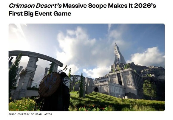 펄어비스가 오픈월드 액션 어드벤처(Open World Action-Adventure) ‘붉은사막(Crimson Desert)’이 IGN 등 글로벌 주요 미디어로부터 ‘2026년 기대 게임’으로 소개됐다고 27일 밝혔다.