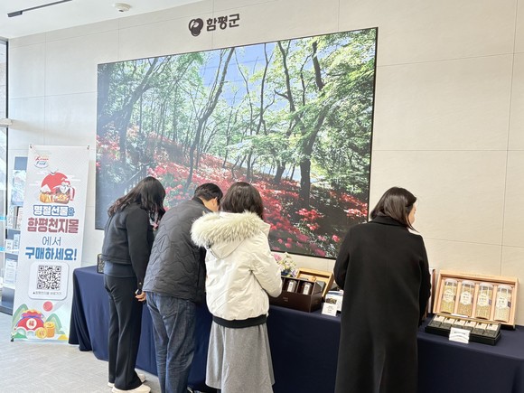 소비자는 홍보 테이블에서 상품을 직접 살펴본 후 온라인 함평천지몰에서 주문할 수 있다.