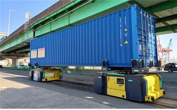 트램기반 환적화물전용 자동운송 셔틀시스템 실증.(사진=BPA 제공)