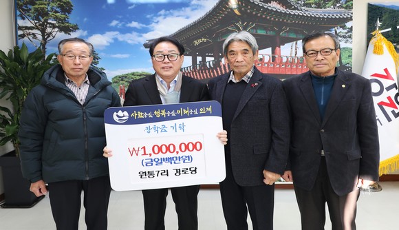 인제군 북면 원통7리 경로당(회장 김성열)은 28일 군청을 방문해 지역 인재 육성 장학금 100만원을 최상기 군수에게 기탁했다.
