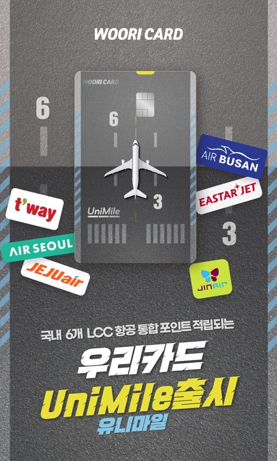 우리카드가 국내 6개 LCC(Low Cost Carrier) 항공사에서 통합으로 포인트를 적립 및 이용할 수 있는 ‘우리카드 UniMile(유니마일)’을 출시했다고 2일 밝혔다.