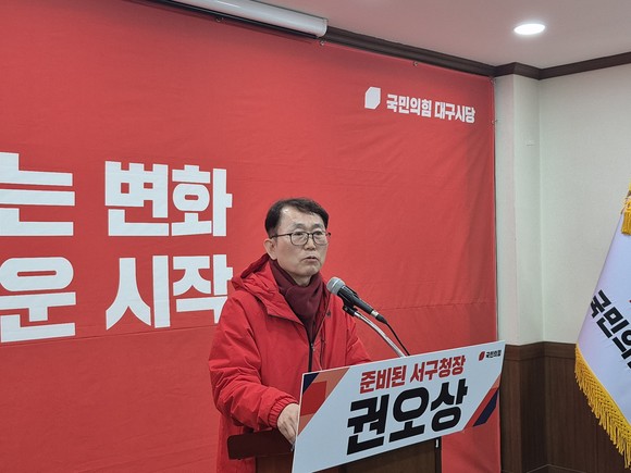 (CNB뉴스=신규성 기자) 권오상 전 대구 서구 부구청장이 2일 국민의힘 대구시당에서 기자회견을 열고 서구청장 선거 출마를 공식 선언했다.