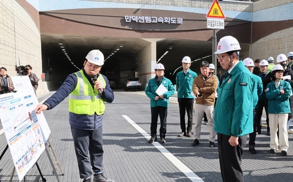 이날 점검은 사업 현황 보고를 시작으로 화재 상황을 가정한 배기 시연, 교통 운영 현황 보고 순으로 진행됐다. 시는 방재 1등급의 재난 방지 설비와 통합 안전관리 체계를 구축한 만큼, 대형 지하도로에 적합한 대응 시스템이 정상적으로 작동하는지 집중 점검했다. 터널 내에는 제트팬과 공기정화시설을 포함한 복합환기설비, 소화전과 물분무 설비, 피난 대피통로와 수직구, 전기차 화재 대응 설비 등이 갖춰져 있다.
