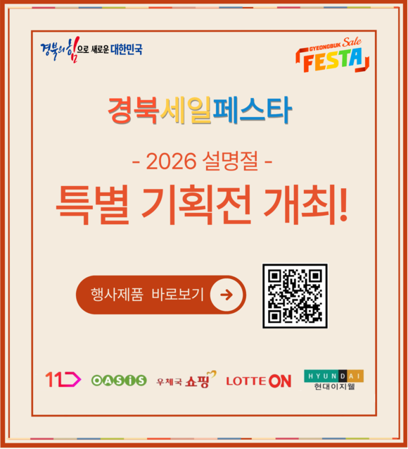 이재훈 경제통상국장은 “설 명절 장바구니 물가 부담이 큰 시기에 이번 경북세일페스타가 소비자들에게 실질적인 도움이 되길 기대한다”라며 “경북의 정성이 담긴 선물 세트를 저렴하게 구입할 좋은 기회를 놓치지 마시길 바란다”라고 말했다.