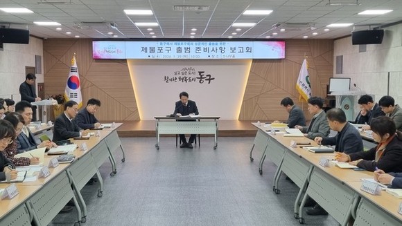 인천 동구는 구청 소나무홀에서 제물포구 출범 준비 사항 보고회를 개최했다고 밝혔다. 보고회는 김찬진 동구청장이 직접 주재했으며 구청 전 부서장들이 참석해 심도 있게 진행됐다.