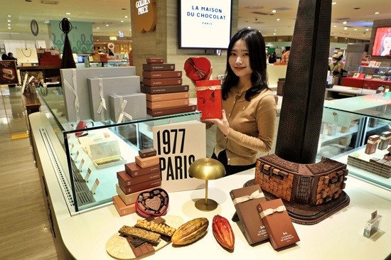 서울 중구 소공동에 위치한 롯데백화점 본점 지하 1층 '라메종뒤쇼콜라' 매장에서 모델이 설 선물세트를 홍보하고 있다. (사진=롯데백화점)