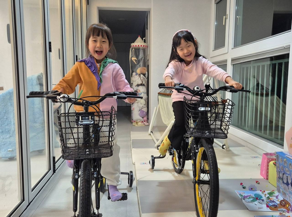포스코 포항제철소 에너지부 백인경 과장의 자녀가 입학 축하 선물을 받고 활짝 웃고 있다. (사진=포항제철소 제공)