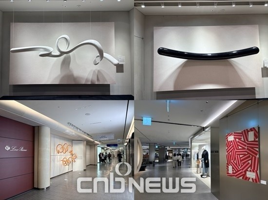 'Mono Series', 'Serenity', '백접유영' 등 선을 통해 움직임과 에너지를 시각화한 정그림 작가는 본점이 가진 다양성을 표현했다. 대표작 'Baram( 바람)' 시리즈로 전 세계에 찬사를 받은 이건우 작가는 본점의 성장 잠재력과 역동성을 나타냈다. 정그림 작가 전시는 4월 20일까지, 이건우 작가 작품은 이달 31일까지 만나볼 수 있다.