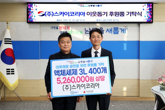 박종효 남동구청장은 “지역사회를 위한 따뜻한 나눔을 실천해주신 스카이코리아에 감사드린다”며 “후원품은 도움이 꼭 필요한 곳에 소중히 전달하겠다”고 말했다.