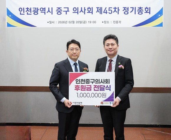 한편, 성금 전달식은 지난 20일, 신포동에서 개최된 ‘2026년 중구의사회 제45차 정기총회’ 현장에서 진행됐다. 총회는 중구의사회 신은호 회장의 개회 선언을 시작으로, 의사 윤리강령 낭독, 김정헌 구청장과 배준영 국회의원의 축사, 성금 전달식 순으로 진행됐다.