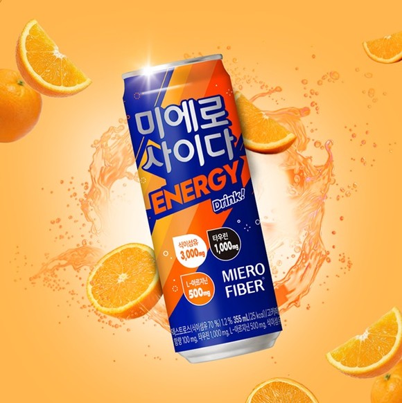 현대약품에 따르면, ‘미에로사이다 에너지’는 성장세를 이어가고 있는 에너지 음료 시장을 겨냥한 제품으로, 미에로화이바 특유의 상쾌한 맛을 탄산 에너지 음료로 구현한 것이 특징이다. 식이섬유 3000mg을 함유했으며, 고카페인과 함께 타우린 1000mg, L-아르지닌 500mg을 더해 에너지 음료로서의 기능성을 강화했다.