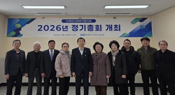 인제군사회복지협의회(회장 김인중)는 26일 협의회 교육실에서 '2026년 정기총회'를 개최했다. 이날 서종만 지체장애인협회 인제군지회장과 김바울 임마누엘 직업재활원장이 신임 이사로 선임됐다.