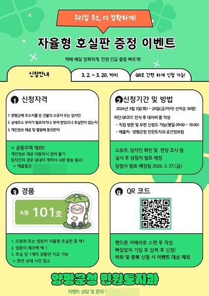 또한, 군민 참여 확대를 위해 ‘자율형 호실판 증정 이벤트’도 병행 추진한다.