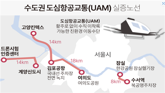 국토교통부 도심항공교통(K-UAM) 실증 사업이 비도심 1단계를 지나 수도권 도심 2단계 구간으로 확대되면서 고양시가 거점 후보로 거론되고 있다. 2단계 실증은 킨텍스에서 김포공항을 거쳐 여의도, 잠실, 수서로 이어지는 노선을 중심으로 운항 안정성과 운영 체계를 점검하는 과정이다.