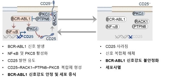 백혈병은 암을 유발하는 단백질이 지속적으로 활성화되면서 세포 내 증식 신호가 비정상적으로 커져 발생하는데, 암세포가 신호 환경에서도 증식을 지속할 수 있게 만드는 기전은 충분히 밝혀지지 않았다고 설명했다.