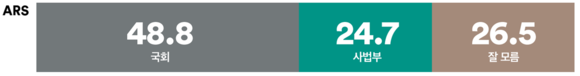 ‘국회 대 사법부’ 선호도 조사에서도 국회에 대한 신뢰도(48.8%)가 사법부(24.7%)보다 2배 더 많았다.