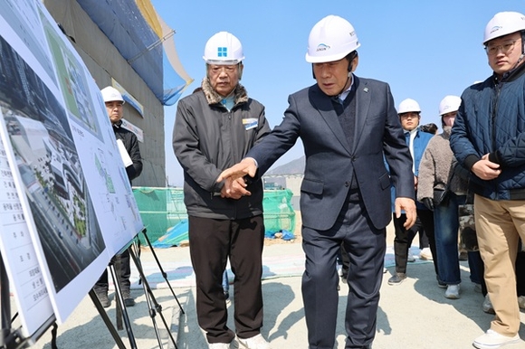 나동연 양산시장이 오는 10월 준공을 앞둔 사송복합커뮤니티의 공사 진행 상황 및 시설 현황 현장점검을 실시했다.