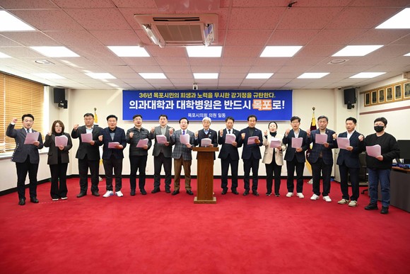 목포시의회(의장 조성오)는 17일 성명을 내고 순천 의과대학 설립 및 정원 전원 배정 구상에 대해 “전남 서남권의 절박한 의료 현실을 외면한 처사”라며 강한 우려를 표명했다.