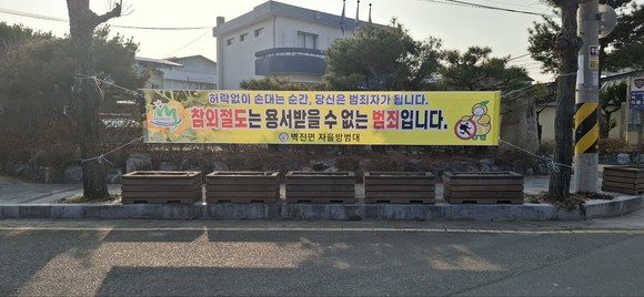 현수막에는 ‘무단 절도 시 즉시 현장 신고’등의 경고문구를 명시해 범죄 예방 효과를 높이고 지역 주민과 방문객들에게 경각심을 일깨우는 데 중점을 두었다.