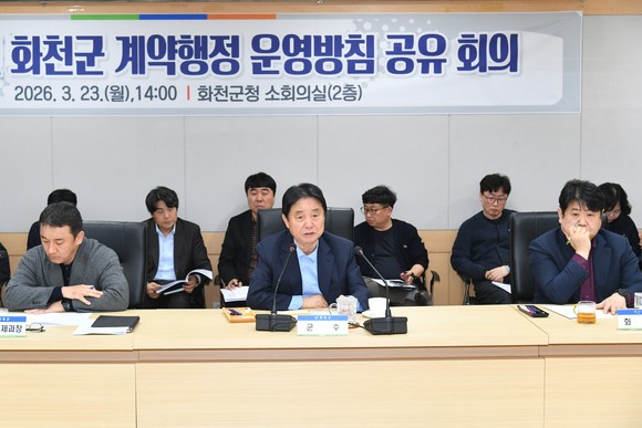 화천군은 지난 23일 군청에서 실과소장과 사업부서 담당자, 지역 건설 관련 단체장 등이 참석한 가운데 ‘2026 계약행정 운영 방침 공유 회의’를 개최하고 지역 중심의 계약 운영 원칙을 확립했다. 이번 회의는 중동 지역 긴장 고조와 유가 상승 등 대내외 경제 불확실성이 커지는 상황에서 지역 건설업체 보호와 경기 부양을 위해 이례적으로 마련됐다.