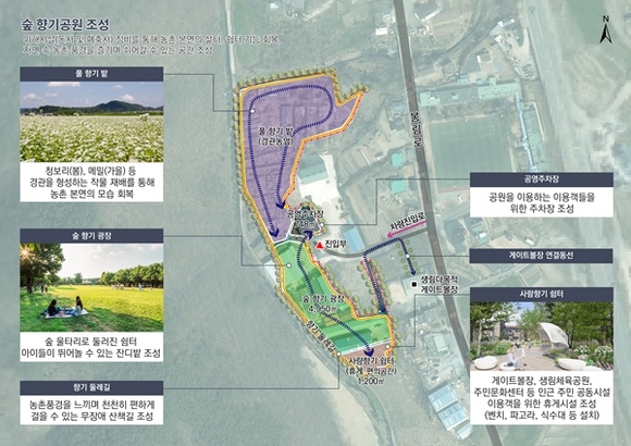 또 장기간 마을의 흉물로 방치된 노후 폐축사 부지는 주민주도형 경관농업 부지로 탈바꿈시켜 농촌 본연의 아름다움을 회복함은 물론 방문객들에게 다채로운 볼거리를 제공하는 지역 명소로 육성할 계획이다.