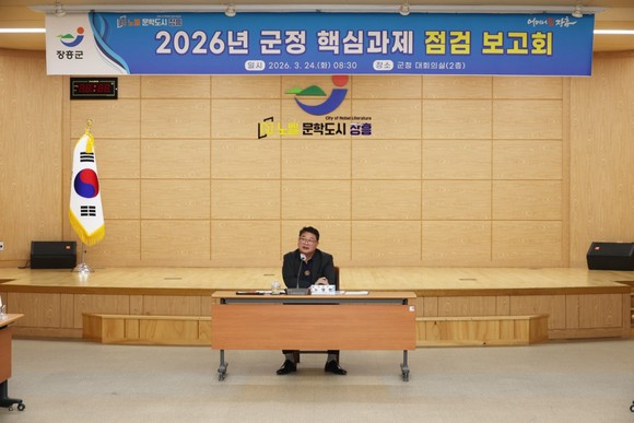 장흥군은 김성 장흥군수의 제9회 전국동시지방선거 예비후보 등록으로 노영환 부군수 권한대행 체제로 전환된 가운데 군정의 안정적 운영과 주요 현안의 차질 없는 추진을 위해 핵심과제 점검 보고회를 개최했다고 지난 24일 밝혔다.