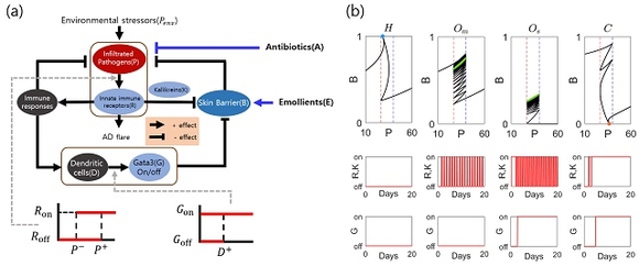 이번 연구는 미국 애리조나주립대와의 공동연구 성과로, 교육부·한국연구재단의 중점테마연구소(G-LMAP)지원사업을 통해 부산대 강요셉 연수연구원이 교신 및 제1저자로 수행했다. 해당 논문은 ‘Controlling severe atopic dermatitis dynamics(중증 아토피 피부염 동역학의 제어)’라는 제목으로 국제 학술지 『카오스(Chaos)』 3월 17일자 Featured Article로 소개됐다.