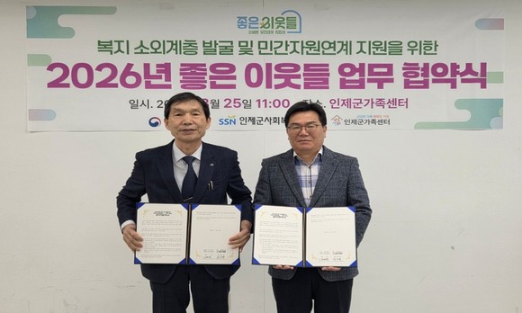 인제군가족센터(센터장 정국현)와 인제군사회복지협의회(회장 김인중)는 지난 25일 인제군가족센터 회의실에서 복지 소외계층 발굴 및 지원 협력을 위한 업무협약을 체결했다.