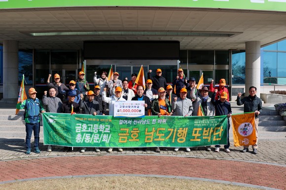 광주 금호고 동문회 모임인 ‘금호 남도기행 또박단’이 진도군청을 방문해 고향사랑기부금 100만 원을 전달했다.